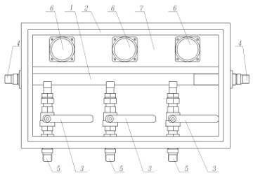 Контрольно — отключающий блок (далее блок) предназначен для распределения и подачи кислорода под рабочим давлением одновременно по трем выходам (к трем потребителям). На каждой из трех магистралей установлены: отключающий вентиль и контрольный манометр. Блок оснащен дополнительным входом — выходом с заглушкой.