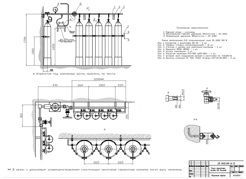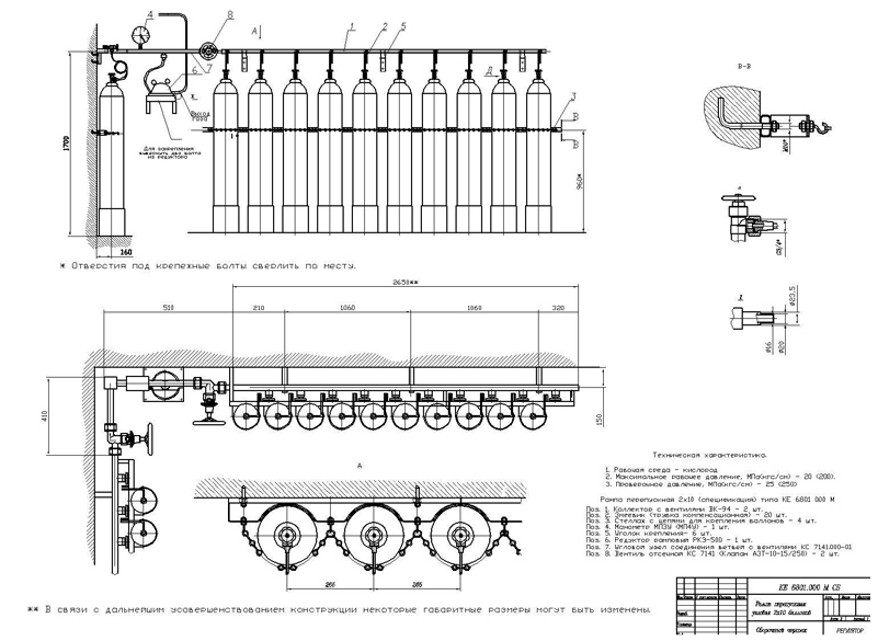 Рампа наполнительная предназначена для наполнения газом потребителей от баллонов давлением до 20 МПа (200 кгс/см2).Рампа состоит из коллектора (ветви) и стеллажа. На ветви установлено 5 вентилей (ВК-94) для присоединения баллонов через змеевик. Один конец трубки присоединяется непосредственно к баллону, а второй к вентилю, установленному на коллекторе. На ветви установлен вентиль (ВК-94) для выпуска газа. На соединительной ветви установлен предохранительный клапан высокого давления, отсечной вентиль КС-7141 (7144,7142) и манометр. Рампа изготовлена в климатическом исполнении УХЛ2 по ГОСТ 15 150.