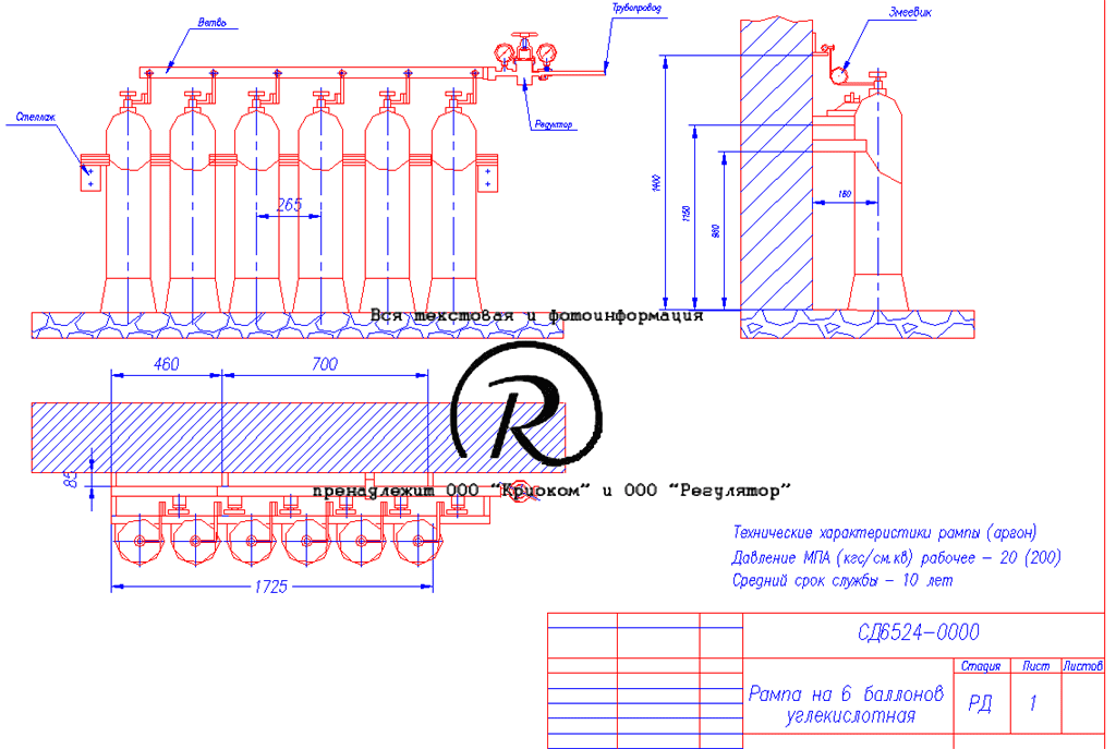Рампа разрядная углекислотная тип РУ-6 на 6 баллонов предназначена для подачи углекислоты из баллонов потребителю. Размещение рамп разрядных: в помещении — в местах проведения газосварочных и иных видов работ с применением технических газов; вне помещения — в шкафу, защищающем от прямого попадания влаги. Рампы разрядные на 6 баллонов оснащены мембранными вентилями повышенной надежности.