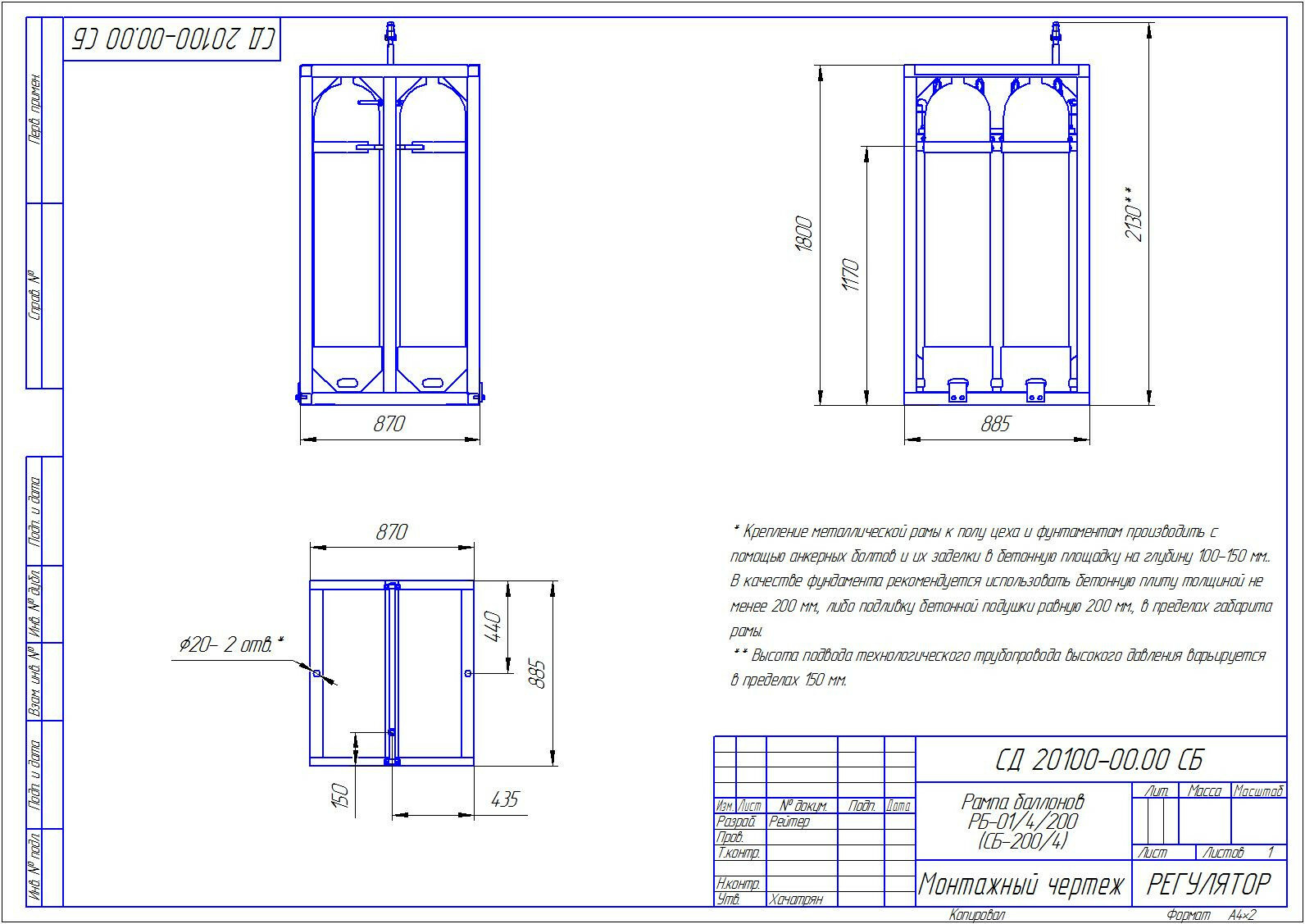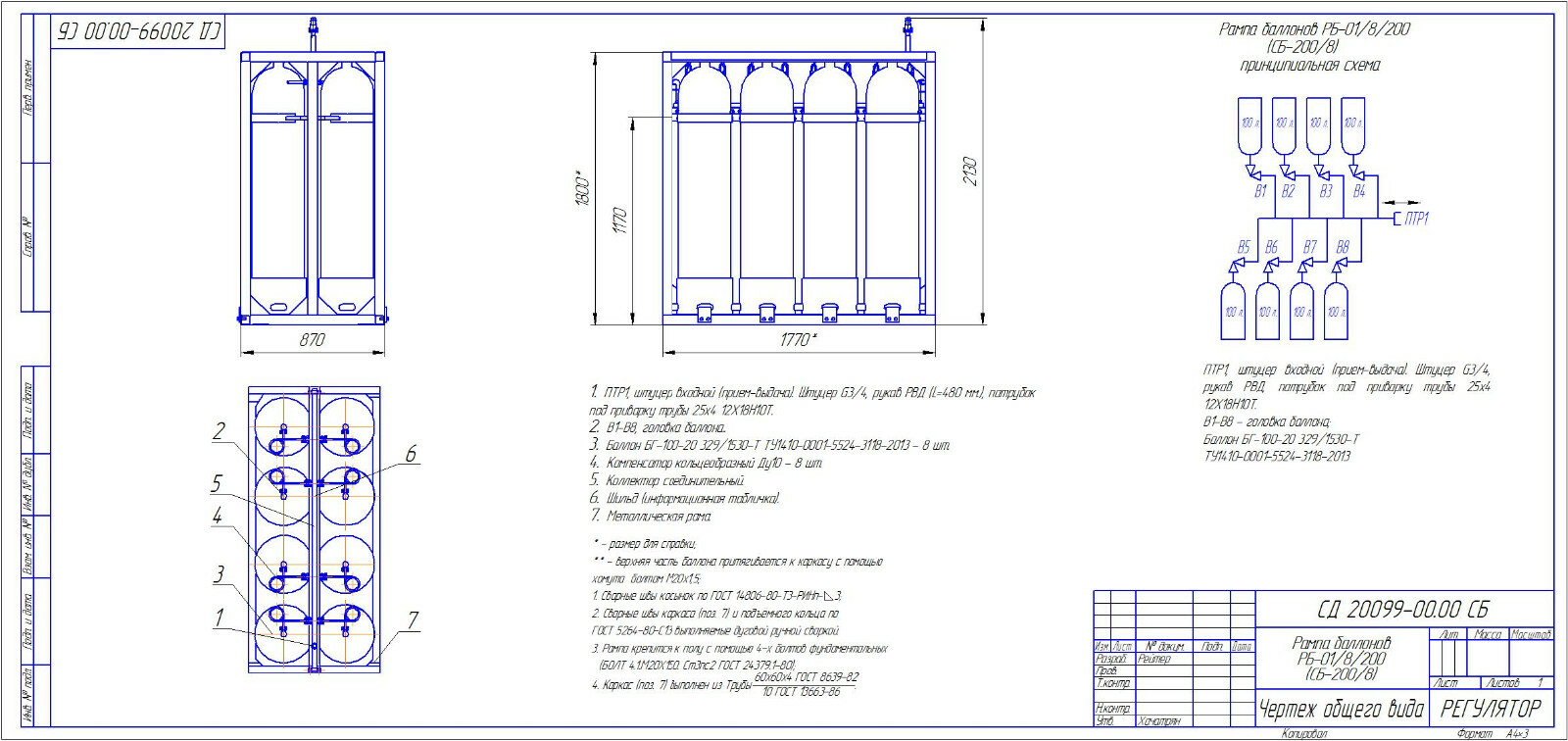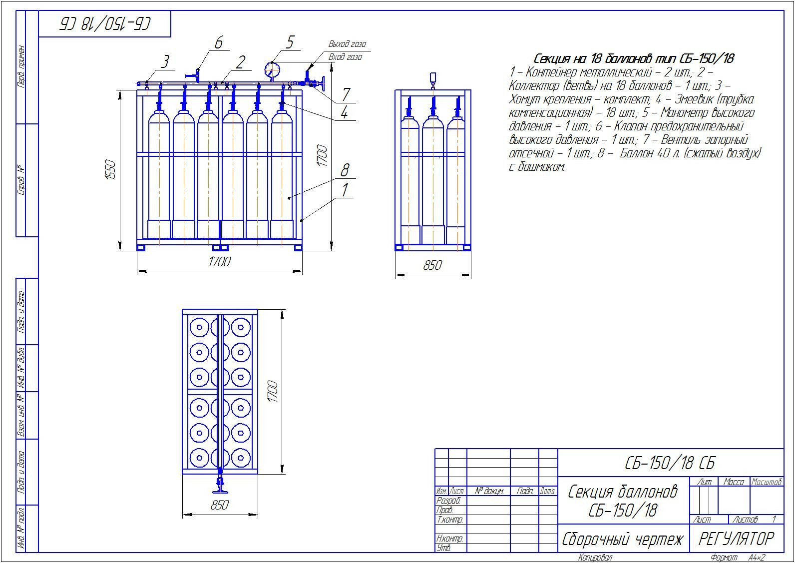 Габаритные размеры блоков систем сжатого воздуха (ДxШхВ), мм.