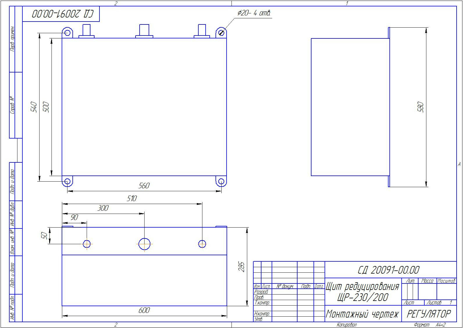 Обозначение изделия: Щит редуцирования ЩР-230/200, Щит редуцирования ЩР-400/200